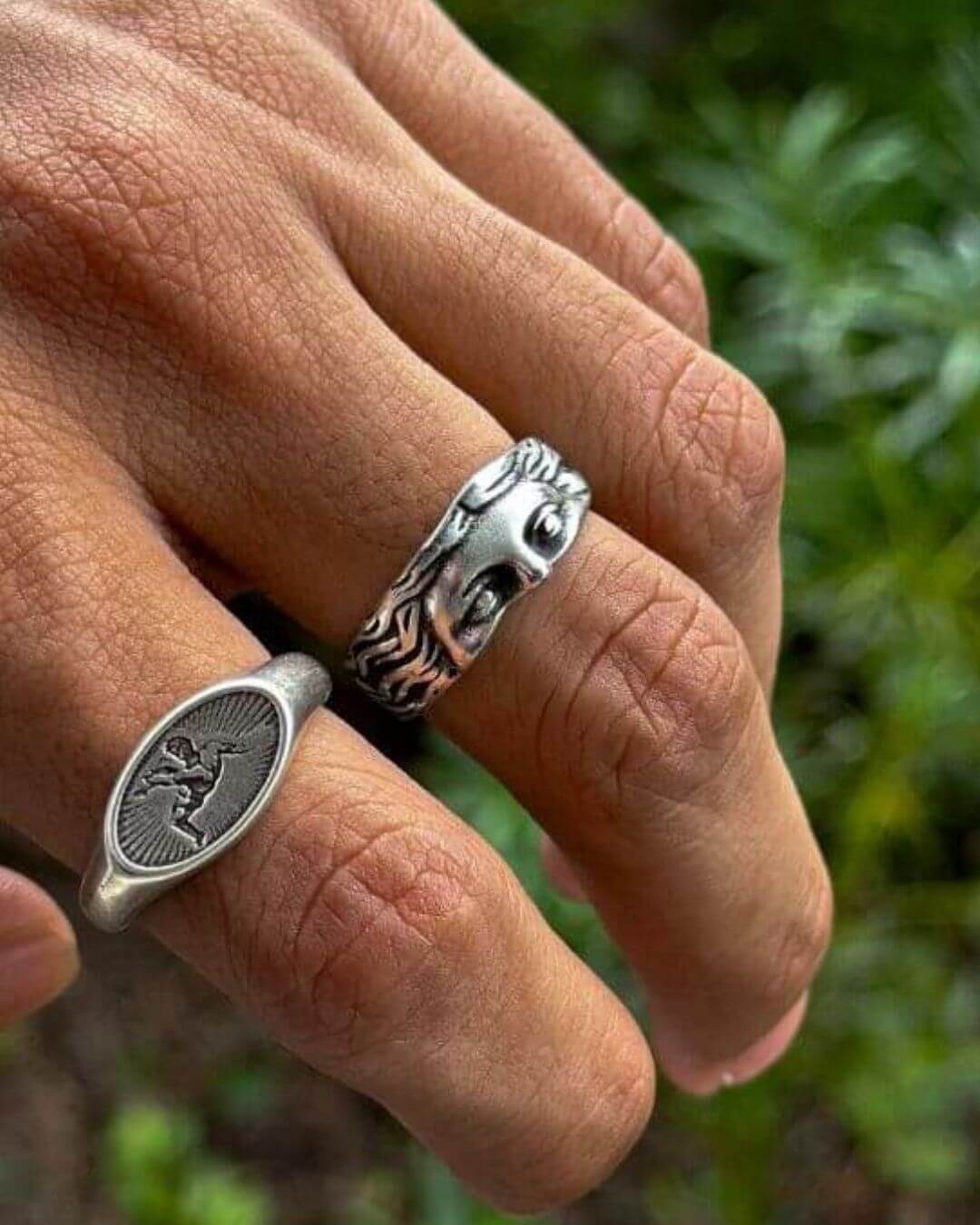 The Aphrodite Ring is forged in 316L stainless steel and doubles as a modern study in balance. Its face carries a calm, composed expression; a quiet reference to the classical ideal of beauty and the strength that often lies beneath it.
